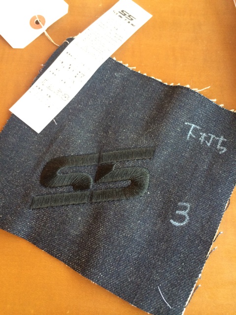 マニュアルレイバーさんとのコラボデニム製作ですが、いよいよ大詰めです。デニムの何処かに配置されるS5ロゴ刺繍の最終確認を行って来ました。 デニム内側に貼り付けられるスレーキと言われるタブも完成。 妥協なくデザインと打合せ…