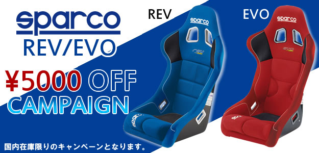 スパルコ フルバケットシートの定番モデル「REV」「EVO」が国内在庫限りのキャンペーン特価として5,000円OFFにて販売開始です!本日現在、各モデル/カラーともに潤沢に在庫がございますが、規定数量に達し次第キャンペー…