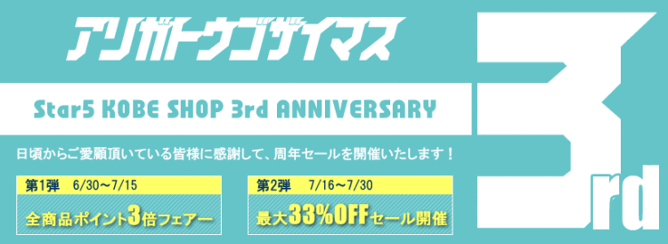 本日6月30日、Star5 神戸店は開店3周年を迎える事が出来ました! 神戸市西区にオープンしたあの日から、気付けば1000日以上が経過したとは今でも少し信じられませんが、いつも当店をご利用いただくお客様や取引業者様のお…