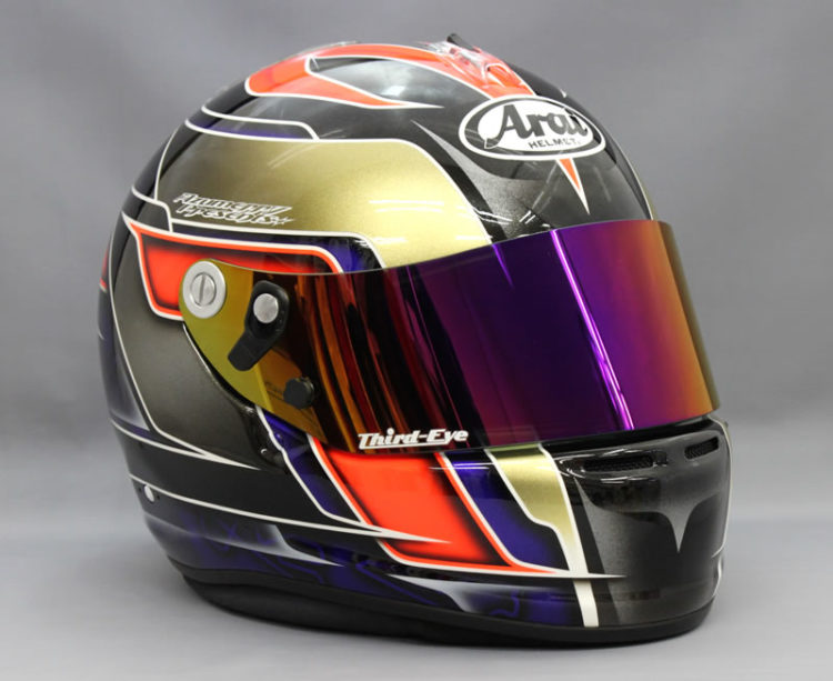 連日のヘルメット完成ラッシュにつき、本日もお客様からご依頼いただいたオリジナルヘルメットペイント作品をご紹介させていただきます(ペインターさん、本当にありがとうございます!)。 今回は当店初の競艇選手用ヘルメットです。水…