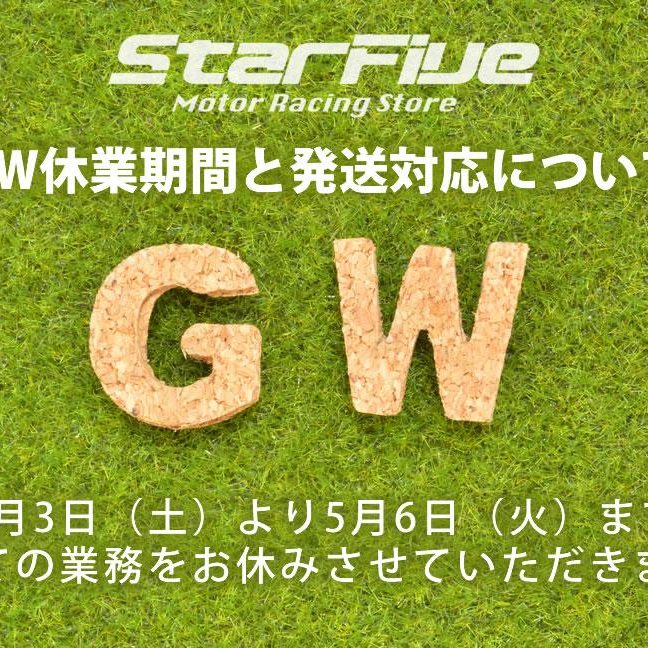 モーターレーシングストア Star5(スターファイブ)GW休業期間のお知らせ。神戸店の営業、ご注文商品の発送スケジュールなどについて。