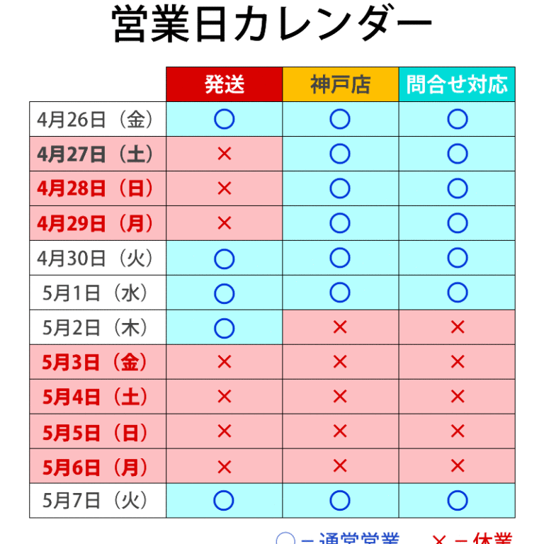 ■GW休業のお知らせ(2024-04-21発表) ゴールデンウィーク期間は下記日程を休業期間として、商品発送ならびに店舗営業など、すべての業務をお休みさせていただきます。お客様におかれましては大変ご不…