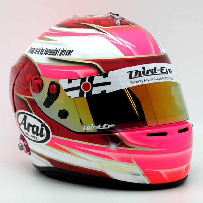 お客様よりご依頼いただきました「オリジナルヘルメットペイント」作品をご紹介させていただきます。今回の担当ペインターはアズメリープレゼンツさんです。 ピンクとワインレッドを基調とし、スピードになびく…