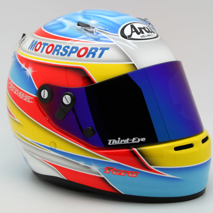お客様よりご依頼いただいたヘルメットペイント作品をご紹介させていただきます。今回はアライヘルメット CK-6Sをベースに、F.アロンソ選手のデザインをモチーフとしたオリジナル作品です。 アロンソ選…